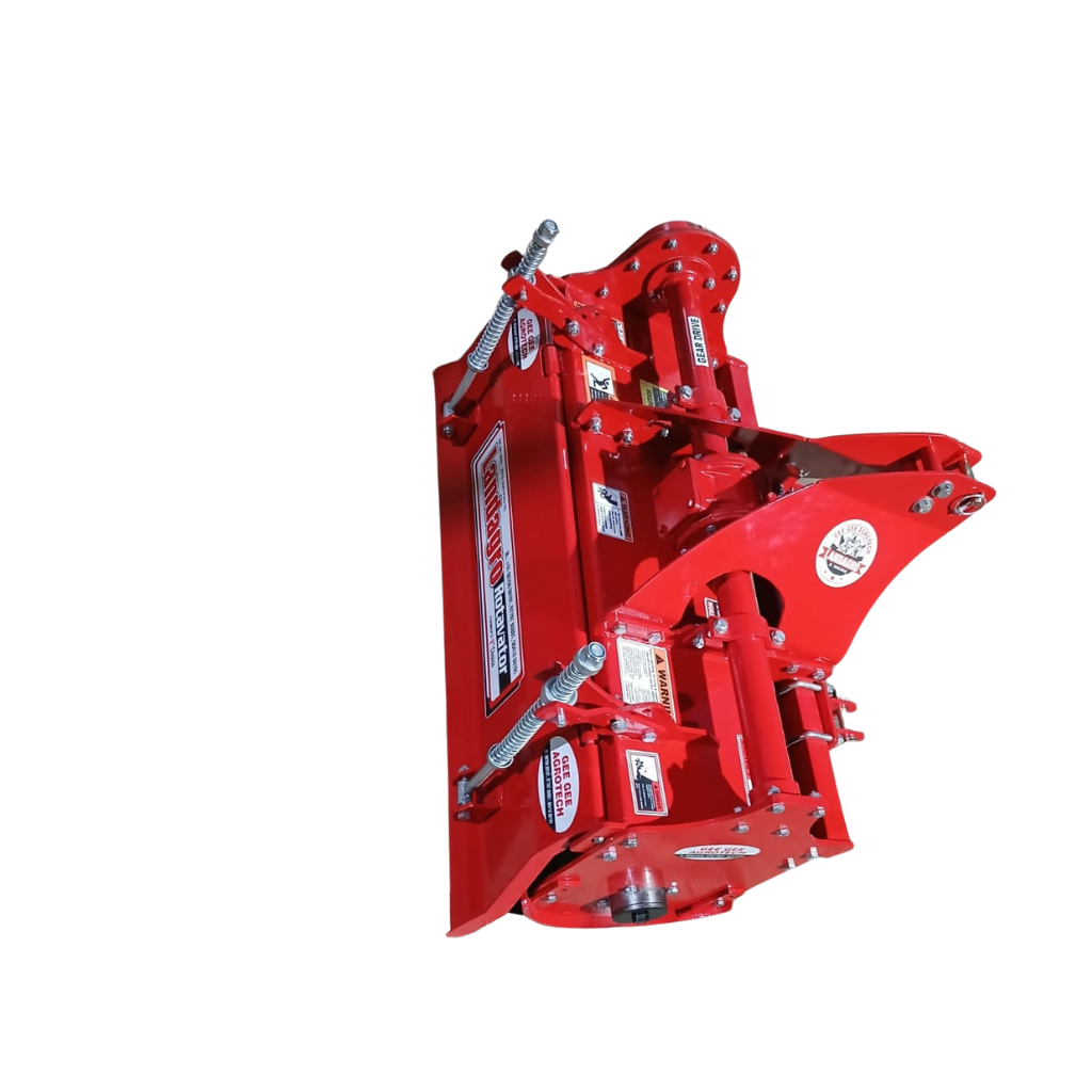 A rotavator, also known as a rotary tiller or rototiller, is a farm implement used for preparing soil for planting by breaking it up, mixing in amendments like fertilizers or compost, and creating a smooth, uniform seedbed. It typically consists of rotating blades or tines that churn and aerate the soil as the implement is pulled or driven across the field by a tractor or other power source. Rotavators are commonly used in agriculture and gardening to facilitate soil cultivation and seedbed preparation.